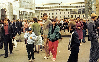 Am nächsten Vormittag erwartet uns eine riesige Menschentraube vor dem Gebäude. Ein Ordner mit roter Armbinde versucht diese zu einer Schlange zu bändigen, allerdings mit mäßigem Erfolg. Gegen 12 Uhr erschallt der Ruf "Mittag" und die Menschentraube löst sich langsam auf. Als gegen 15 Uhr die Schalter wieder öffnen, geht das Geschiebe von neuem los. Nach anderthalb Stunden stehen wir dann endlich vor dem Ziel unserer Mühe, Angesicht zu Angesicht mit einer der allmächtigen Platzkartenverkäuferinnen. Wir fuchteln immer wieder mit den Transitscheinen und beteuern, dass wir unbedingt in den Zug am Abend steigen müssen. Die Schalterdame fuchtelt und schimpft genauso und das ganze geht eine Weile hin und her, aber während dessen hat sie uns den begehrten Stempel verabreicht. Leider ist damit der Platz im Zug immer noch nicht ganz sicher, da nach Aussagen der mongolischen Studenten der Schlafwagenschaffner auch noch eine wichtige Rolle spielt. Er ist der Mann oder die Frau vor Ort und bestimmt, wer wirklich einsteigt. Manche wollen dafür einen kleinen Gehaltszuschuss und machen im schlimmsten Fall das ganze Ticket wieder ungültig. Deshalb ist uns allen auch nicht ganz wohl, als wir am Abend vor dem Einsteigen in den Waggon die Fahrkarten an den Schaffner abgeben müssen. Man hat schon oft gehört, dass der sich dann zehn Minuten später an nichts erinnern konnte, zumal auf der Karte nicht mal ein Name vermerkt ist. Erst als der Zug sich in Bewegung setzt und wir noch drin sind, schwindet unser Misstrauen und wir haben wahrscheinlich einen der letzten ehrlichen Schlafwagenschaffner der Sowjetunion erwischt.