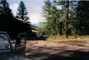 Für mich sind aber die mongolischen Landschaften der eigentliche Grund meines Hierseins und mein Hauptinteresse gilt der Frage: "Wie kommt man dahin?". Noch relativ einfach gelangt man in das Ausflugsgebiet Tereldsch etwa 60 Kilometer von Ulaanbaatar im waldreichen Chentii-Gebirge gelegen. Irgendwo in der Verwandtschaft muss man sich dazu ein Kraftfahrzeug besorgen. Meist sind das natürlich die Dienstfahrzeuge von kleineren Chefs, denn privat genutzte Fahrzeuge gibt es im Gegensatz zu den wirklich im privaten Besitz befindlichen Autos, häufiger. Bis Tereldsch kann man mit solchen Dienstautos auch problemlos fahren, da drücken die Polizeiposten ein Auge zu. In andere Richtungen kann man solche Schwarzfahrten kaum unternehmen. Hier verlangt die obligatorische Kontrolle am Stadtrand immer die Fahrzeugpapiere.