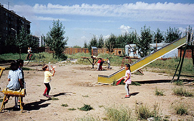 Es ist mittlerweile schon später Nachmittag und an eine Weiterfahrt ist zunächst nicht zu denken. Anderseits bietet es sich auch nicht gerade an, in unmittelbarer Nähe einer Siedlung sein Zelt aufzuschlagen, denn im völligen Gegensatz zu den in der freien Steppe lebenden Nomaden findet man unter den Bewohnern solcher Siedlungen immer Leute, die ihre eigenen Lebensformen entwickelt haben, die weit entfernt sind von der ansonst uneingeschränkten Gastfreundschaft der Mongolen. Wir suchen also das örtliche Gästehaus auf, wo man mich allerdings gleich nach den Reisegenehmigungen fragt. Irgendwie bekomme ich dann auch ohne Genehmigung die Erlaubnis hier zu nächtigen.