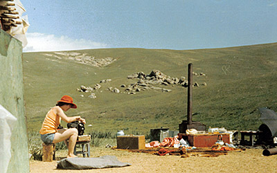 Im Gegensatz zu unseren Gastgebern können wir uns jeden Morgen von der schon höher stehenden Sonne wecken lassen. Für die Araten ist die Nacht bereits so gegen fünf zuende, denn da müssen die Stuten das erste mal gemolken werden, um den begehrten Rohstoff für die Airag-Produktion zu erhalten. Die Tage verbringen wir Touristen im Wesentlichen damit, auf den umliegenden Bergkämmen zu wandern oder auch hin und wieder zu Reiten.