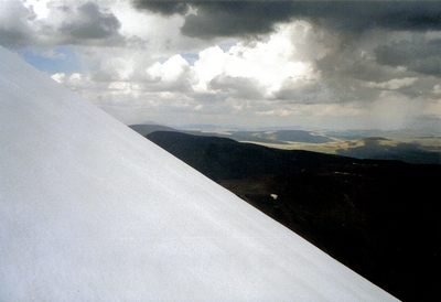 Nur ein kleiner Teil der Gruppe nimmt die Strapazen auf sich und macht sich in Richtung Otqon Tenger auf den Weg. Nach einigen Kilometern flacher Anstiege durch Sümpfe, Gestrüpp und Findlinge ist erst der Fuß der eigentlichen Pyramide erreicht. Hier wird es steiler, etwa 45 Grad und der Blockschotter liegt ziemlich locker. Das Wetter ist jedoch nahezu ideal, keine Wolke steht am Berg, eher ungewöhnlich für den Himmelsgott Otgon Tenger, aber die Voraussetzung, dass man überhaupt weiter steigen kann. Irgendwann, hoch oben im Firn, ist aber dann auch für den letzten Kämpfer die Zeit zum Rückweg herangereicht.