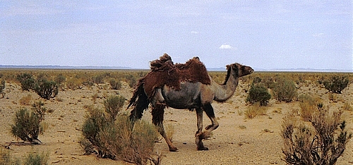 Sieben Touristen, drei UAS Mini Busse und zwei Begleiter verlassen UB in Richtung Südgobi, eine Gruppe, wie sie nicht so selten unterwegs ist in den Steppen, Wüsten und Gebirgen der Mongolei. Auf der Strecke Richtung Süden ist man nicht allein als Tourist, schon wenige Kilometer nach der Stadtgrenze trifft die Reisegruppe auf Motorradfahrer aus Israel. Eine der Maschinen, die wahrscheinlich in UB gemietet worden sind, macht keinen guten Eindruck, kaum zu glauben, dass damit eine längere Strecke zu bewältigen ist. Es ist Juni und die Steppen sind satt grün, es hat kürzlich geregnet und auch sonst scheint das Jahr fruchtbar zu werden, für die Herden, das zahllose Vieh, das die Landschaft belebt. Die ersten hundert Kilometer ziehen sich hin, es werden mehr Fotopausen gemacht, als gefahren wird, die Motive scheinen nicht abzureisen, später, wenn das erste dutzend Filme verschossen ist, wird das anders sein, ein Kamel oder Adler ist dann kein Fotomotiv mehr sondern einfach nur Teil der Landschaft, aber heute am ersten Tag, ist alles noch ein Fotomotiv wert. Auch das erste Nachtlager ist noch etwas besonderes, zwar haben die meisten der Teilnehmer schon Touren in aller Herren Länder hinter sich, aber die Tatsache, dass dort, wo es gerade vom Zeitpunkt her angebracht erscheint, ohne vorherige Planung sieben Zelte aufgebaut werden, kurz darauf ein beachtliches Feuer lodert und man ungestört eine Nacht verbringen kann, diese Erfahrung beeindruckt doch noch so manchen Globetrotter.
