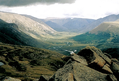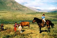 Von Uliastai geht es zunächst auf schmalen, aber halbwegs instand gehaltenen Wegen auf Hochweiden mit Tundravegetation, lichten Lärchenwäldern und ausgedehnten Sümpfen. Aber hier enden auch alle Wege. Wir versuchen durch Abschreiten einen Weg durch Sumpf und Tundragestüpp zu finden. Nach kurzem müssen wir feststellen, dass es ein sinnloser Versuch ist, so an den Fuß des Otgon Tenger zu gelangen. Wir "fahren" zurück zur letzten Jurte und wollen uns Pferde organisieren.